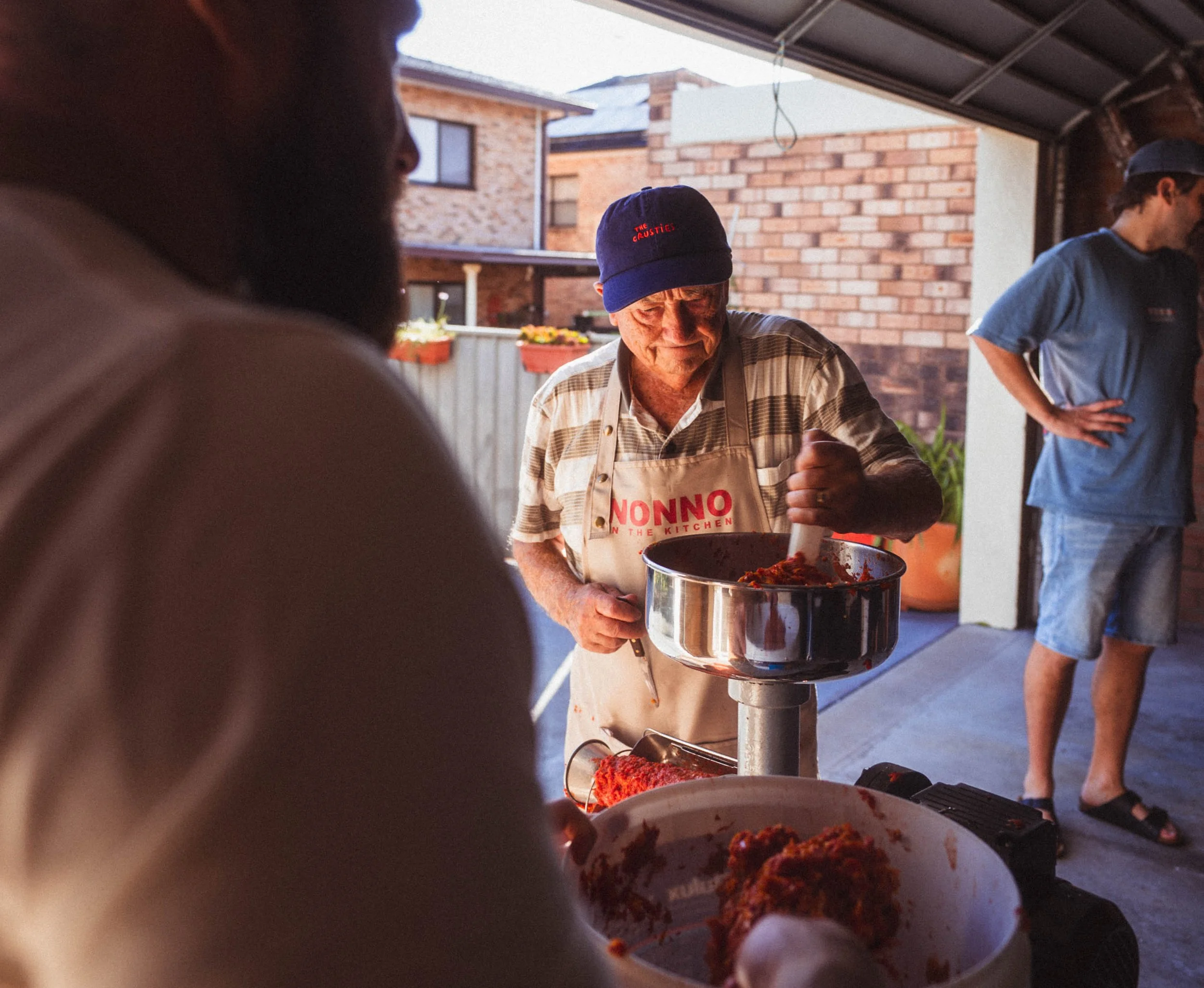 After a week of frenzied calls and messages – scrambling to secure tomatoes and jars to beat the end-of-season tomato cut off, a deadline I never thought I’d lose sleep over, we managed to secure 5 crates of Roma tomatoes, 100 shipped from Melbourne, and one very patient Italian man to teach us his ways.